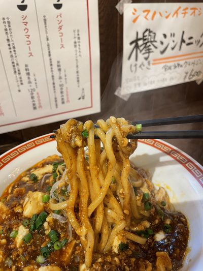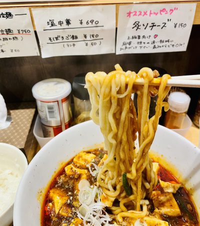 ゴッツい麺が上手に麻婆を受け止める。