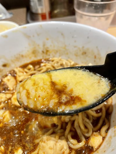 レンゲで麻婆を混ぜながら・・・