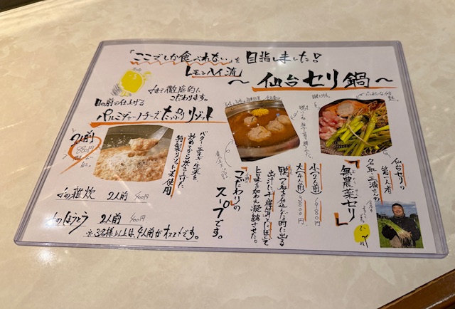 レモンハイのセリ鍋の。
