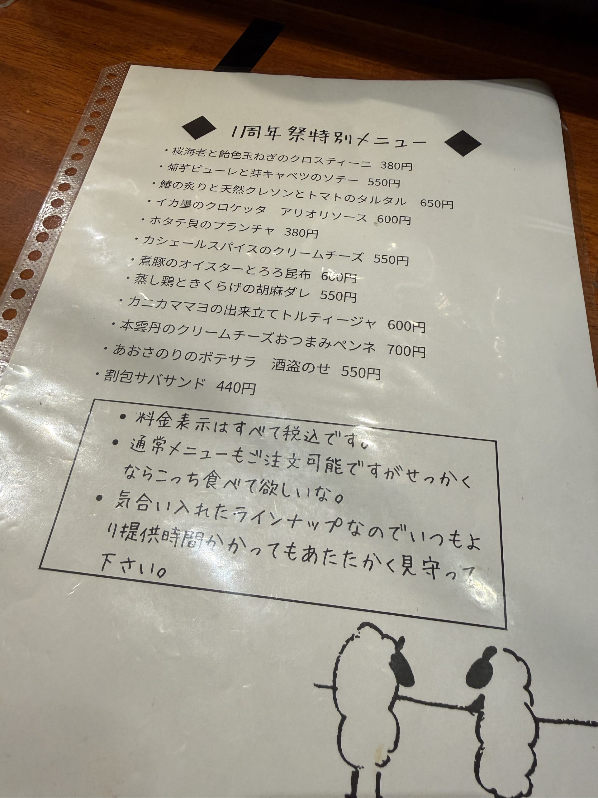 周年祭特別メニューをみて。