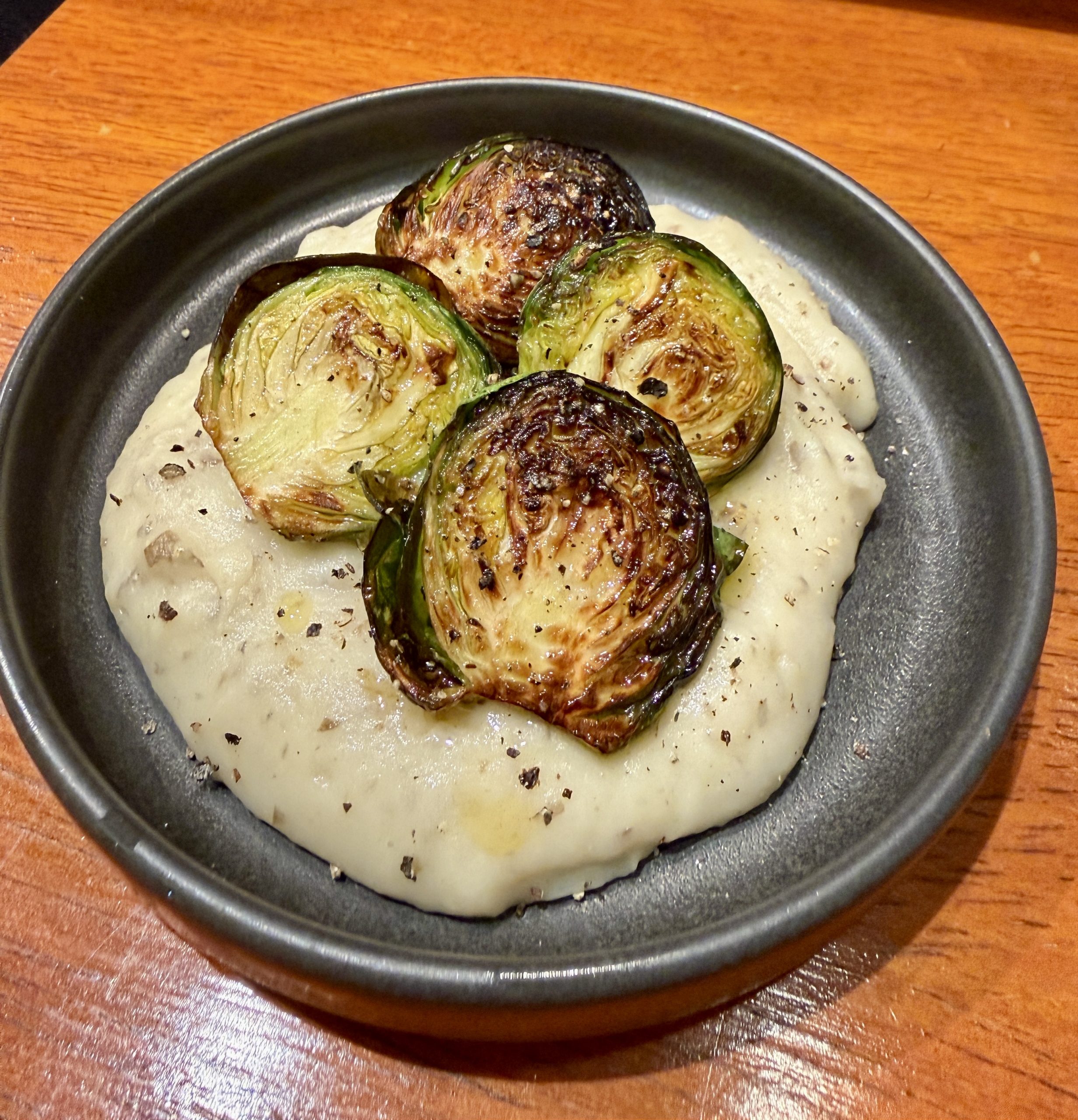 菊芋ピューレと芽キャベツソテー。