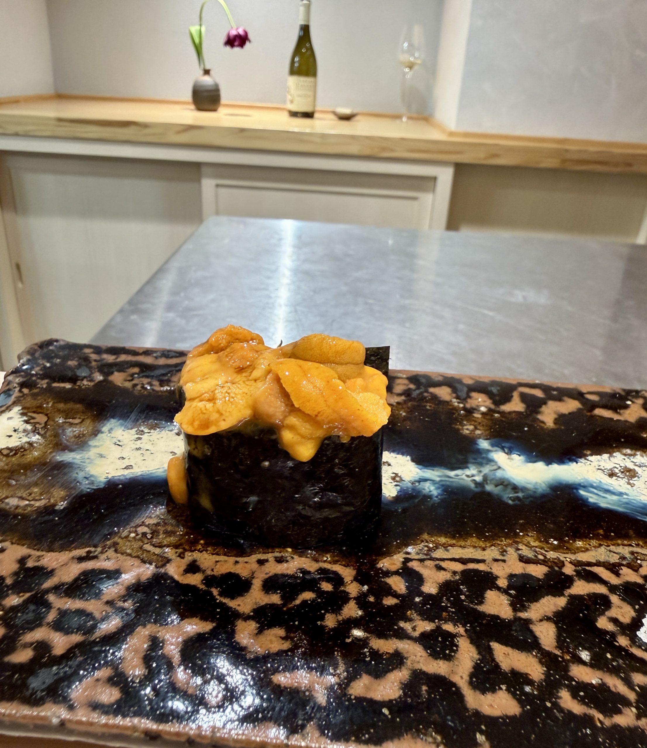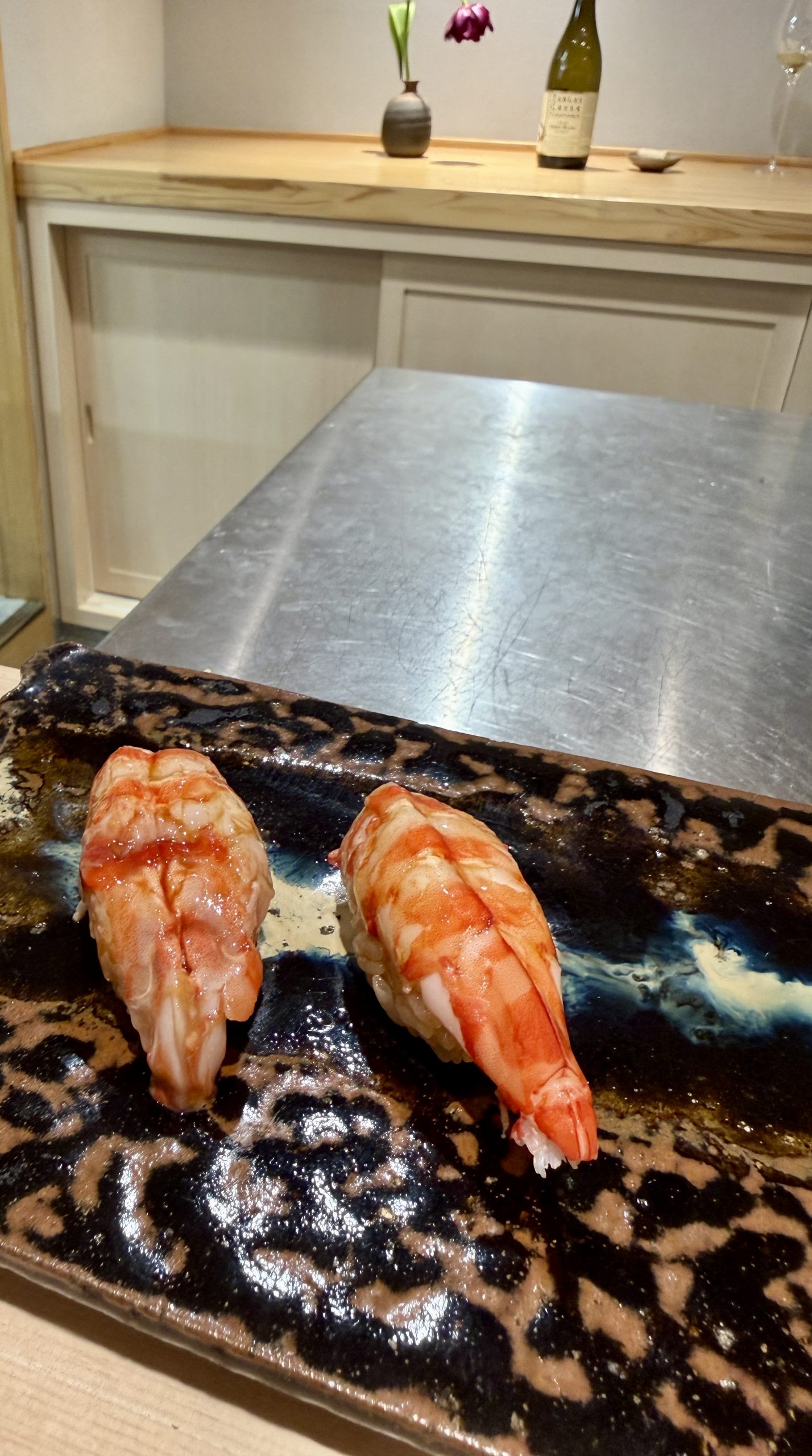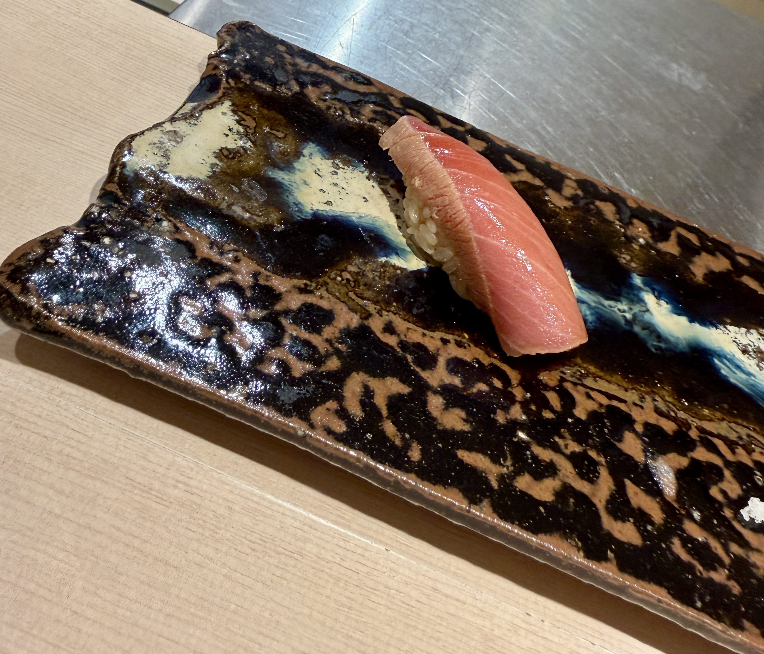 目の前に握ってもらた寿司置いて。